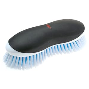 This scrubber is perfect for countertops and other large work surfaces because of its wide bristle area. With two types of stiff nylon bristles to tackle the chore, the bar brush is great for tile, Corian, Formica, or even polished concrete--bristles won't lose their shape no matter how hard you scrub. The Good Grips line features durable, nonslip flexible handles on every product. Ergonomically designed to fit the palm comfortably and softly, the pressure-absorbing processed rubber handle puts less tension on the hands, while providing an outstanding grip. Made from the same material as dishwasher gaskets are constructed of, the handles are slip-proof, wet or dry, as well as dishwasher-safe. Good Grips products are moderately priced and have won the Tylenol/Arthritis Foundation Design Award. --Laurie Notaro